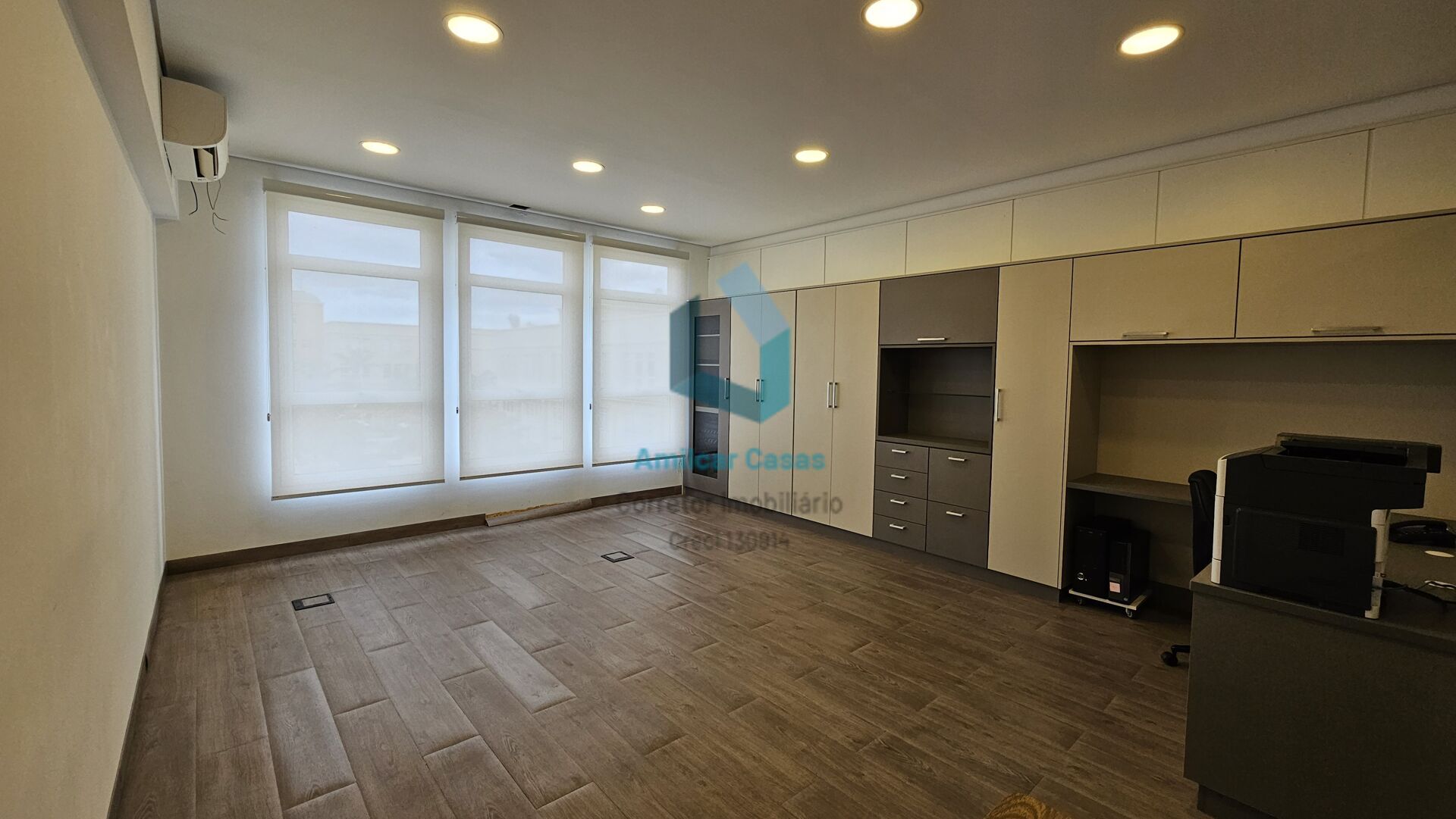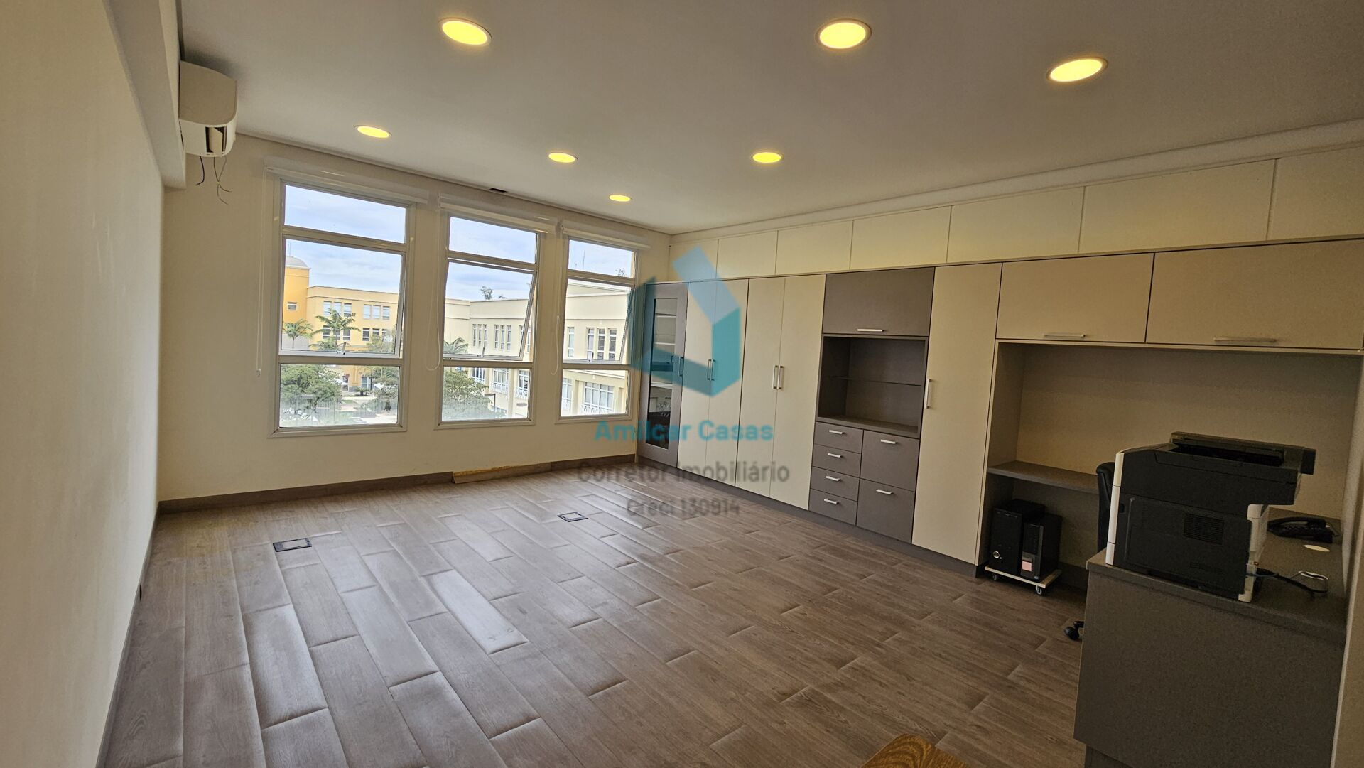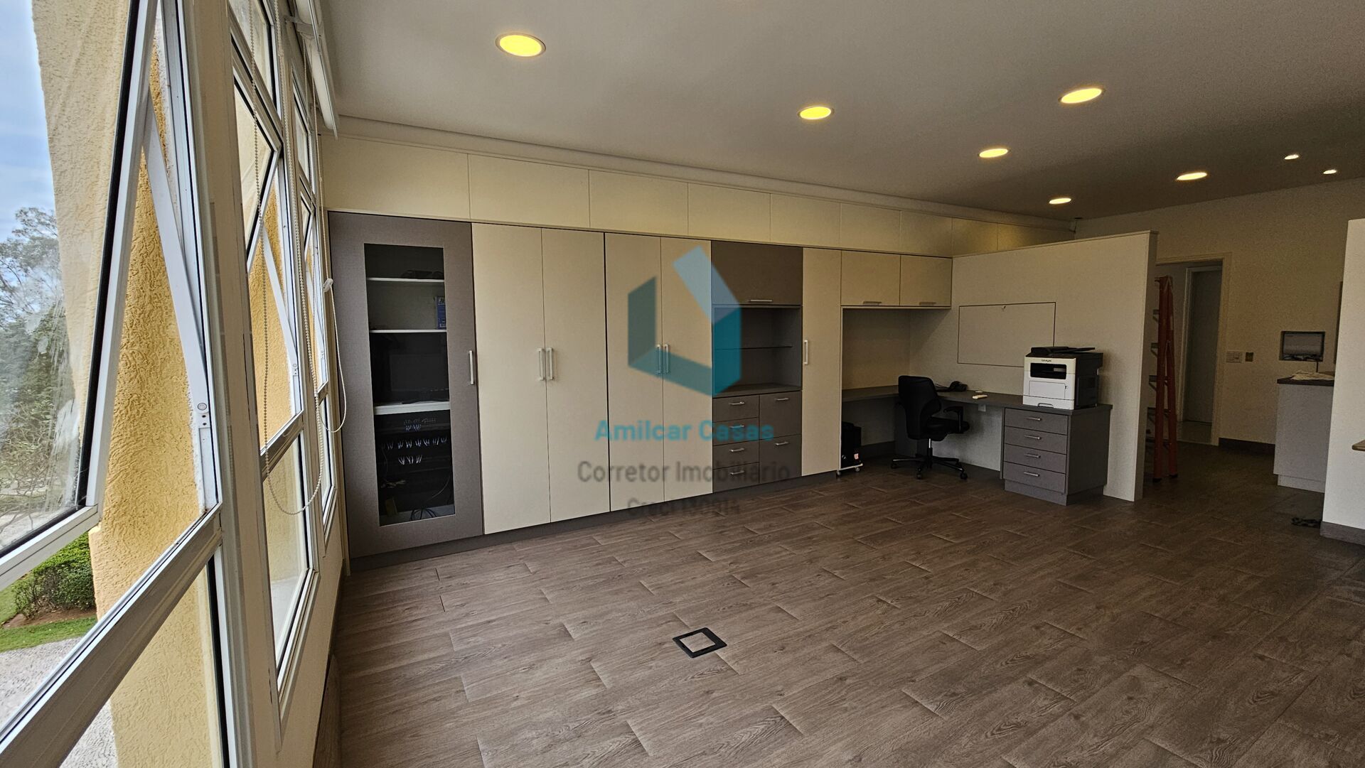 - Armários em marcenaria nova, mesa de reuniões em madeira
